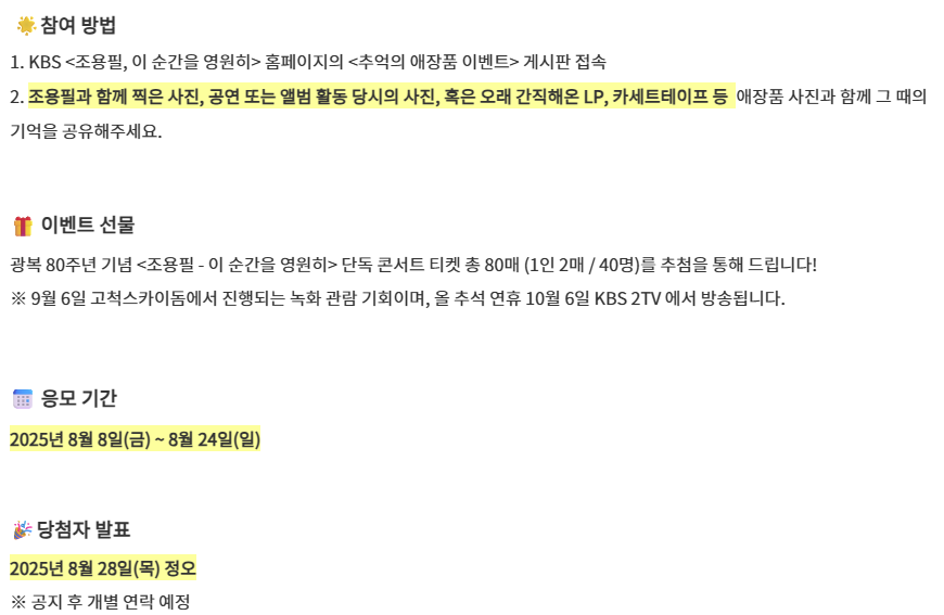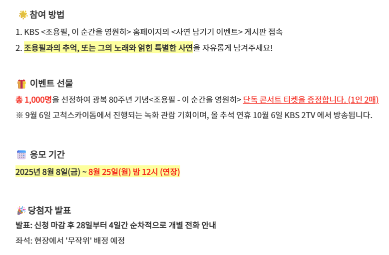 • 추억 소환 이벤트: 8월 25일까지 KBS 공식 홈페이지에서 참여 가능